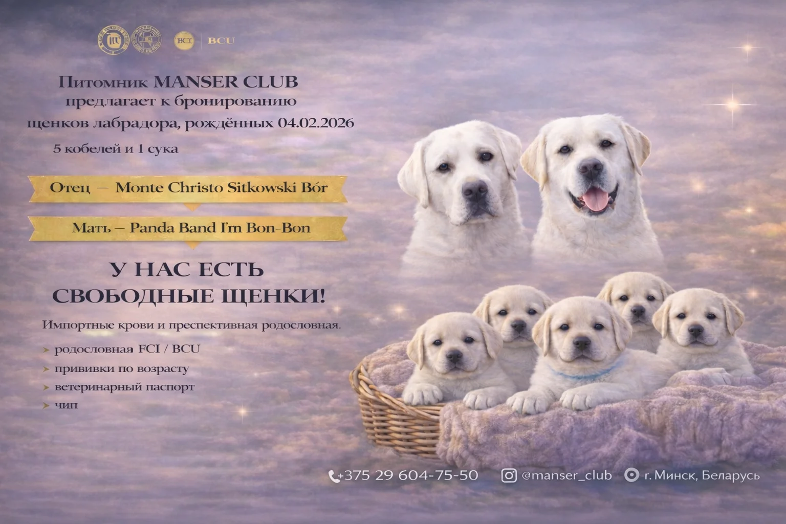 Питомник MANSER CLUB (Мансэр Клаб) занимается профессиональным разведением лабрадоров-ретриверов с упором на здоровье, породный тип, устойчивую психику и отличный экстерьер.